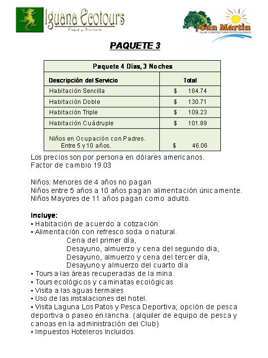 TARIFAS PAQUETES TURÍSTICOS 2011